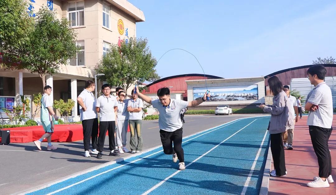 活動設置籃球、羽毛球、跳繩/踢毽子200米接力、乒乓球四個比賽項目。其中,2024年新入職大學生、2023年入職大學生及老員工,分別組成“啟航隊”“沖鋒隊”和“奮進隊”。賽場上,道恩股份領導班子成員紛紛加入比賽行列,新老員工同臺競技,現場妙趣橫生,歡聲笑語不斷。
